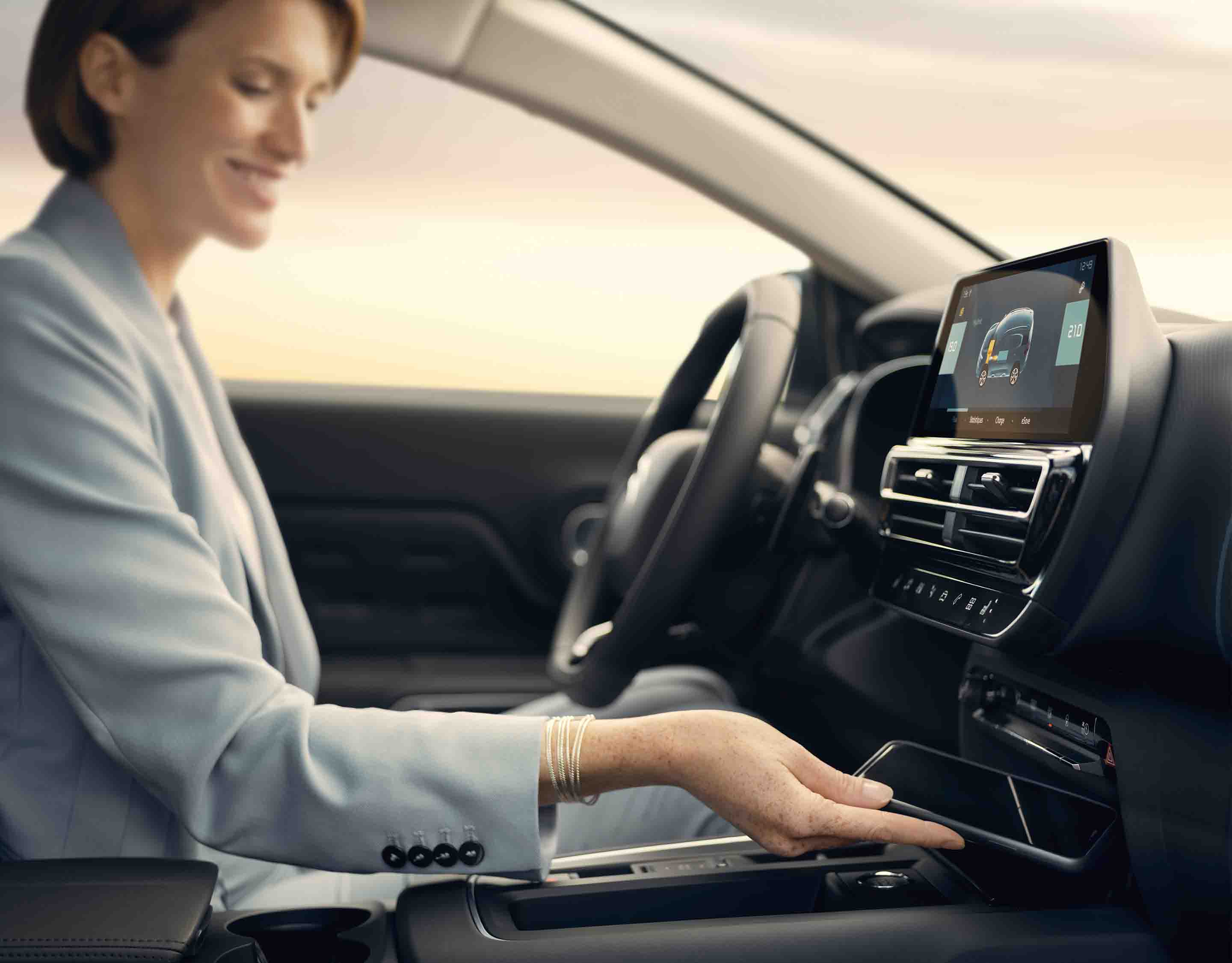 - 10-tolline puuteekraan kuvab süsteemi tööolekut ning ajastatud laadimise, eelsoojenduse ja e-save funktsiooni seadeid, mis aitavad sul säilitada piisavalt voolu akus, et soovitud vahemaa täiselektriliselt läbida.